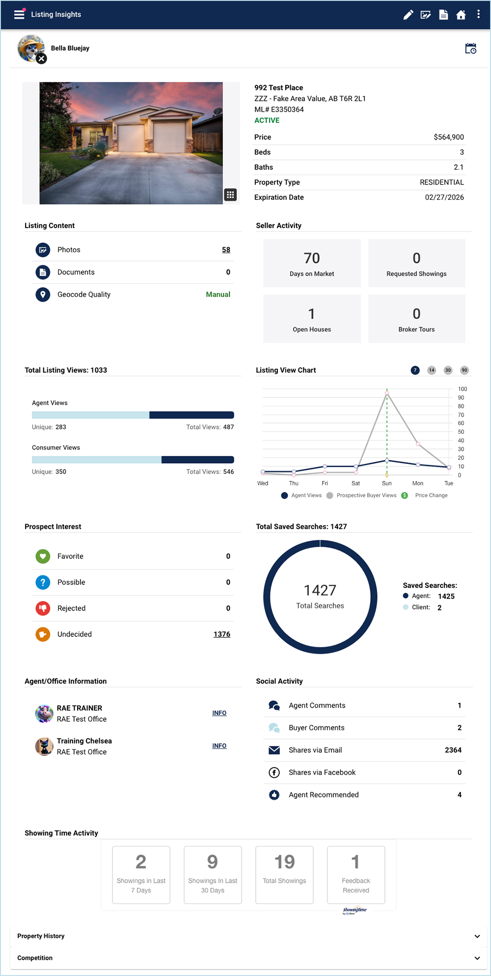 - A new listings insights report delivers quick info on views, client engagement, saved search activity, media, showing activity, competition and more. Click for a preview of the full report.
